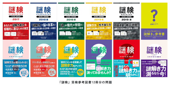 本作はSCRAPが主催する「謎解き力」を測る検定『謎解き能力検定(略称:謎検)』の受検参考図書として発売中の問題集12冊分(過去問11回分、模試19回分)の内容を収録し、そこから謎を出題。加えて本作限定の練習問題計15問も収録しています。