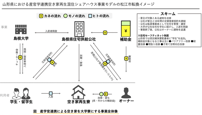 今後、古民家上手プロジェクトチームが目指しているのは、産学官連携によって空き家を大学寮にする事業です。5棟のシェアハウス建設を短期目標に掲げ、他県の先進事例などをもとに大学や地方公共団体などのステークホルダーへの働きかけをすでに始めています。