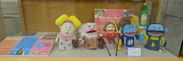 NHK「クインテット」に「アキラ」役で出演していたShion音楽監督の宮川彬良が指揮する「第162回定期演奏会」にて、『Shionの“クインテット”〜大人になった子どもたち〜』を演奏することにちなみ、今年度の展示は、NHK「クインテット」に登場したパペットと、宮川彬良が過去に指揮をとった公演のチラシ・プログラムを展示しております。