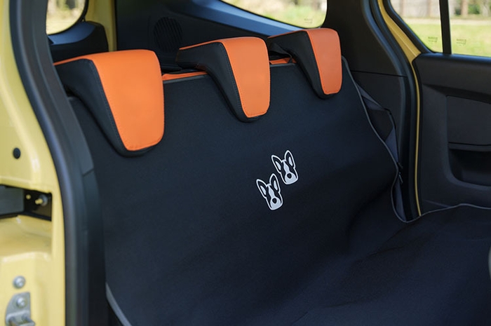 後部座席に取り付けるペット用シートエプロン。汚れや傷からシートを守ることができ、ペットを気軽に乗せることができます。