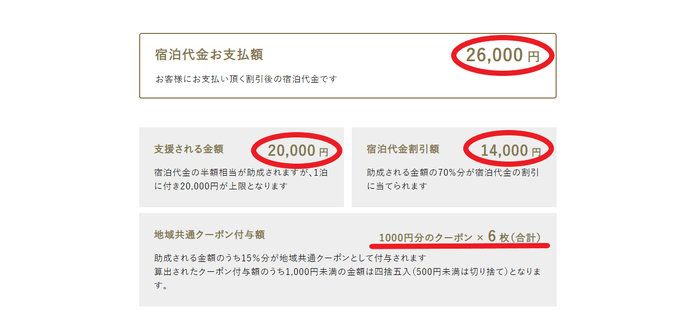 宿泊代金割引額と地域共通クーポンの付与額が一目でわかります!