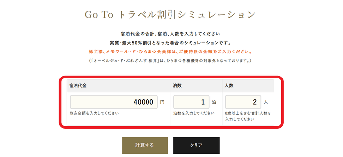 金額や宿泊日数、ご利用人数を入力すると・・・