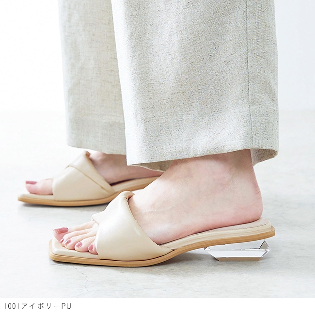 商品名 : menue (メヌエ) スクエアトゥ ラウンドヒール サンダル