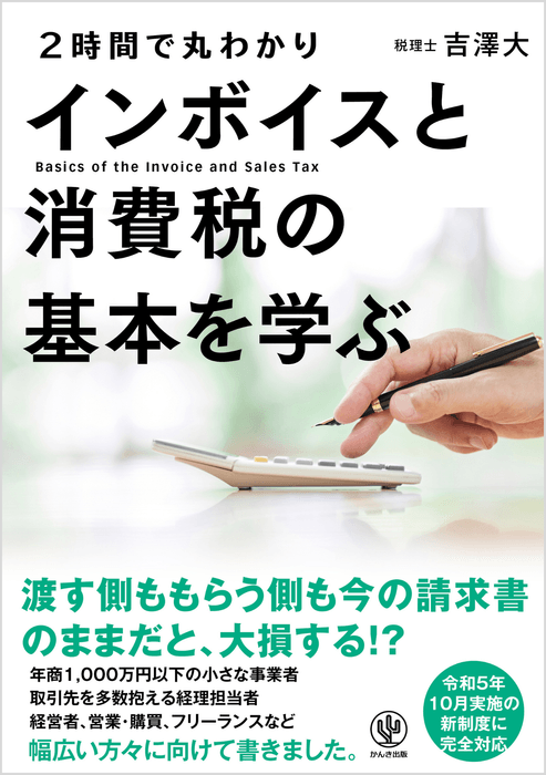 株式会社かんき出版(本社:千代田区 代表取締役社長:齊藤龍男)は、『2時間で丸わかり インボイスと消費税の基本を学ぶ』(吉澤 大/著)https://kanki-pub.co.jp/pub/book/details/9784761276270を2022年9月5日より全国の書店・オンライン書店等(一部除く)で発売いたします。