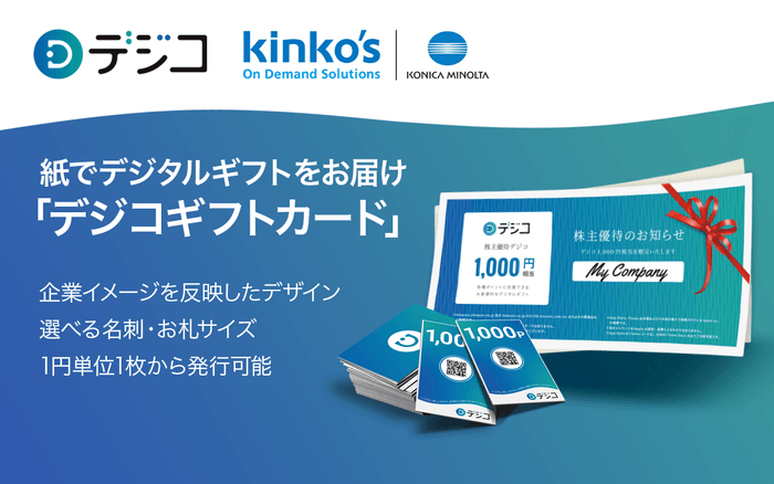 デジタルギフト「デジコ」、キンコーズと連携し紙媒体でデジコを付与できる「デジコギフトカード」の提供を開始