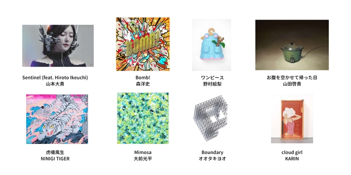 「映画を撮るように」描かれた静謐な女性像を中心に、現代の理想美を油彩で記録することにこだわる、年間に数点しか制作しない完売作家の山本大貴氏をはじめ、古典やポップ・アートの名画、アニメやゲームからの引用といった既存のイメージを組み合わせ、ユーモラスかつ鋭い視点を提供する森洋史氏、花や森、身近な情景にインスピレーションを受け、繊細な筆致と豊かな色彩で自然の美しさと温かさを伝える大前光平氏、京都大学工学部建築学科卒業でデジタル技術を駆使して現実世界にSFから出てきたような立体作品を制作し、独創的な世界観を表現しているオオキタキヨオ氏、油絵具とテンペラを塗り重ねる古典的な技法で、思い入れのある身近なものを描き、ノスタルジックでありながら新しい視点を提供する山田啓貴氏、一円玉や米粒といった身近で些細な存在を用いて様々な事物を表現し、日常的な価値観や現代社会とのつながりを見つめ直す作品を制作している山本雄教氏、そしてコラージュアーティストでありながら、大学ではコンテンポラリーダンスを専攻しモデル活動も行う多才なアーティストで、様々な芸術の要素を融合させた独創的な表現をするKARIN氏など、それぞれのアーティストが独自の視点と技法で作品を制作しており、多様な表現をお楽しみいただけます。