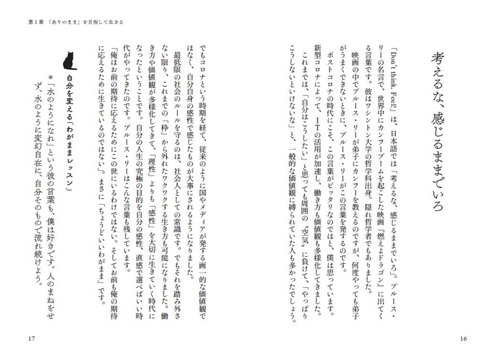 でも、「適度」というのが難しい……。そこでこの本では、「適度」の幅を徐々に広げて考えていきたいのです。僕自身、こぢんまりとしたわがままではなく、いつかは同調圧力からはみ出し、「打たれにくい出る杭」になろうと言い聞かせ続けてきました。