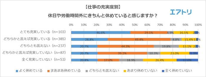 調査7:【仕事の充実度別】休日や労働時間外にきちんと休めていると感じますか?