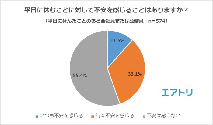 調査2:(平日に休んだことのある会社員または公務員)平日に休むことに対して不安を感じることはありますか?
