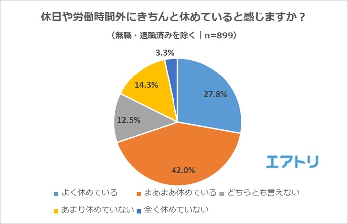 調査1:(無職・退職済みを除く)休日や労働時間外にきちんと休めていると感じますか?