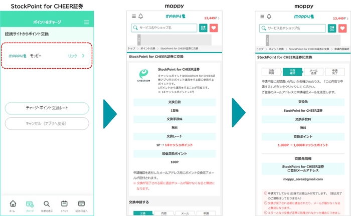 STOCK POINT株式会社(本社:東京都港区、代表取締役社長:美好 琢磨、以下「STOCK POINT」)は、CHEER証券株式会社(本社:東京都中央区、代表取締役社長:小林 伸行、以下「CHEER証券」)と連携提供しているポイント運用アプリ『StockPoint for CHEER証券』のリニューアルに伴い、株式会社セレス(本社:東京都渋谷区、代表取締役社長:都木 聡、以下「セレス」)が提供する「モッピーポイント」とのポイント連携を開始いたします。