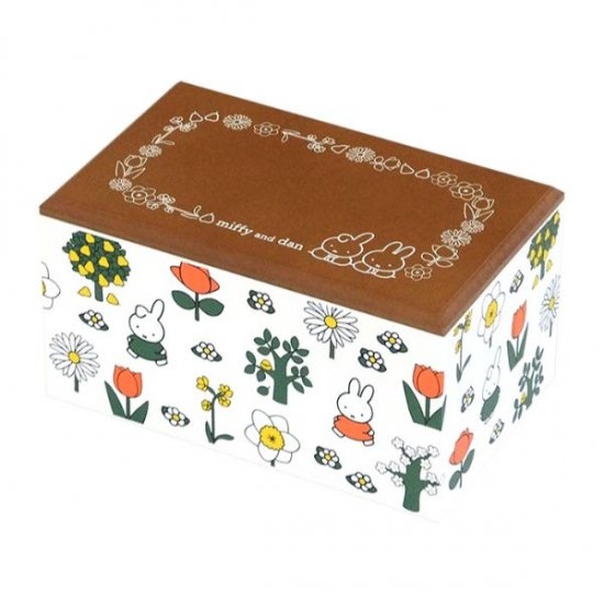 チューリップや木の中にミッフィーとダーンがお散歩しているような、のどかなデザインが魅力の収納箱です。