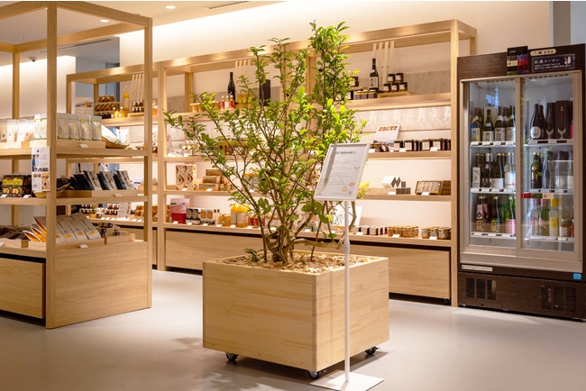 羽田空港第2ターミナルの1階到着ロビー(南)にある、「食を通じて日本各地の魅力を伝える」ことをコンセプトとしたカフェで、日本各地の特産品や伝統工芸品を販売している他、日本茶やお茶漬けをいただくことのできることから、オチャノキに特化した植栽演出を行いました。