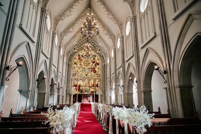 2つのチャペル、7つの披露宴会場を有した白亜の大邸宅では、ラグジュアリーでシックな会場や、緑に包まれたナチュラルな会場、和装にもよく似合うオリエンタルモダンな会場、親しい人だけを招く少人数の会場など、おふたりの邸宅にお招きするような温かで贅沢なおもてなしに満ちたパーティが叶います。