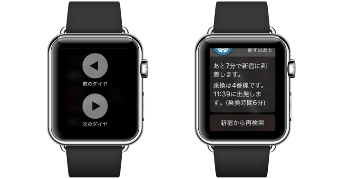 今回リリースする「駅すぱあと for iPhone」ver.3.17.0では、「最後に見た経路」「乗換アラーム」の機能を拡張したことで、Apple Watch単体で前後のダイヤ検索や経路の再検索が可能になります。