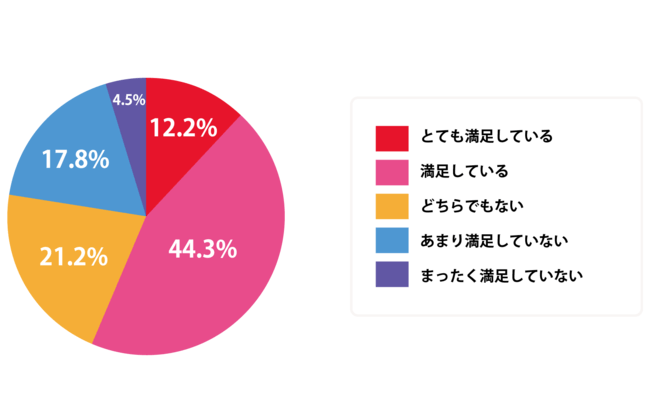 実際に脱毛サロンへ通ったことのある1,000人へさらに詳しく質問を行い、「とても満足している」との回答が12.2%(122人)、「満足している」との回答が44.3%(433人)という結果になりました。
