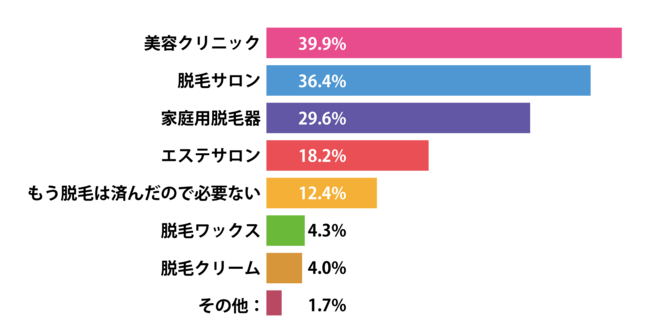 1,000人へ質問を行ったところ、「美容クリニック」が39.9%と、脱毛サロンよりも美容クリニックの数値が上回りました。