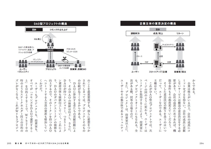 そして、著者が<中心のない、ミッションドリブンのコミュニティ>と表現する「DAO」についても後半で丁寧に解説。