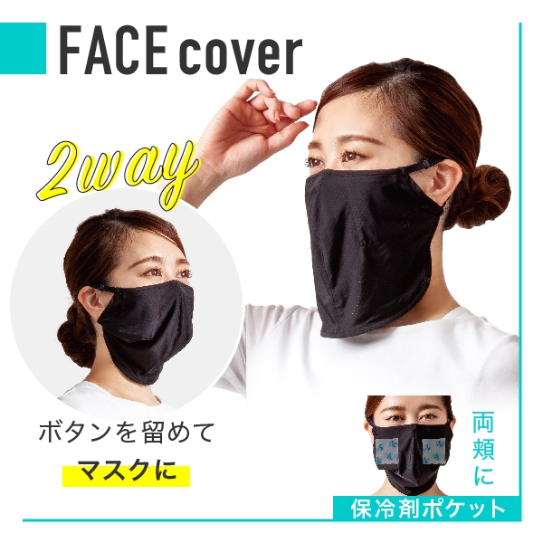 顔から首元までしっかりとケア。一枚でフェイスカバーとマスクの2way仕様。風通しが良く日中の野外活動が快適になります。