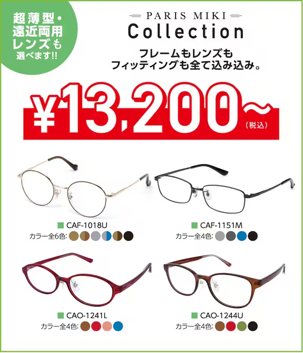 ■メガネ一式 税込¥13,200~!超薄型・遠近両用レンズも選べます