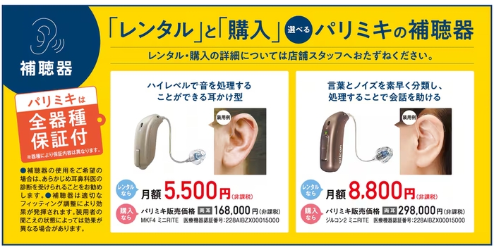 ■「レンタル」と「購入」 選べるパリミキの補聴器