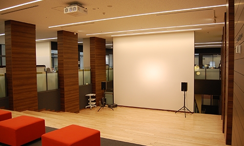 フリースペースの「アカデミックスクエア」では、著名人を招いた公開講座や授業の一環である学生の発表会などさまざまなシーンで活用することができます。その他のスペースも自然に人が寄り集まるオープンな空間として、今後ますますの発展が期待されています。