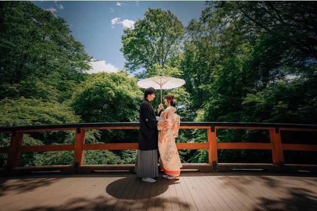 又、施設内では、猪目窓を背景に和装の結婚写真を撮影できる他、約1,000坪の敷地内にあるガーデンには、森の中にガゼボ(西洋風の東屋)など、各所にフォトジェニックな撮影スポットを設置し、素敵なガーデンウエディング・フォトウエディングをお楽しみいただくことも可能です。