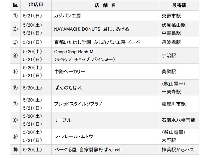 〔2〕京阪沿線 おいしいパン大集合! ※雨天決行・荒天中止