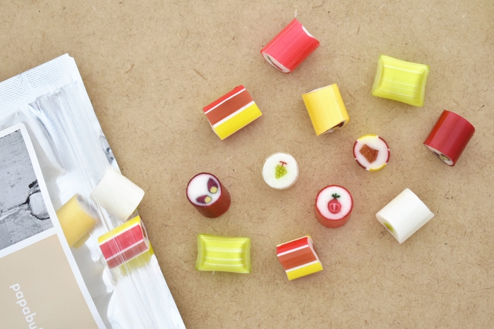 人気の「シャインマスカット」「スイートポテト」「ザクロ」から、珍しい「チェリモヤ」まで5種の秋の味覚がキャン ディに。 開発した職人のイチオシは絵柄もかわいい「アップルパイ」です。口に入れた瞬間広がるシナモンの香り、濃厚なクリーム感の後に爽やかに駆け抜けるリンゴの香りと酸味が至極の一品です。