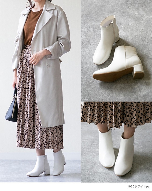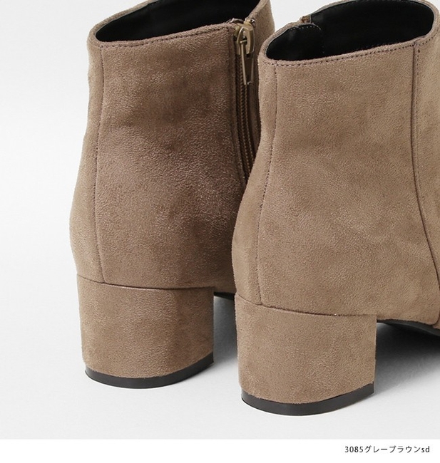 コーデに合わせやすいベーシックデザインのショートブーツ。 安定感抜群のチャンキーヒールで歩きやすさもキレイ見せも叶えてくれる。
