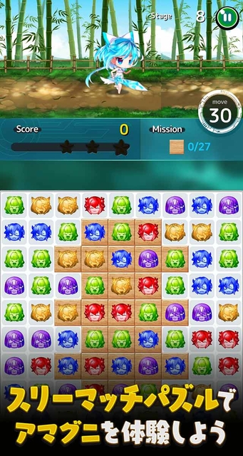 ステージをクリアしてキャラクターをコレクションするマッチ3パズル。