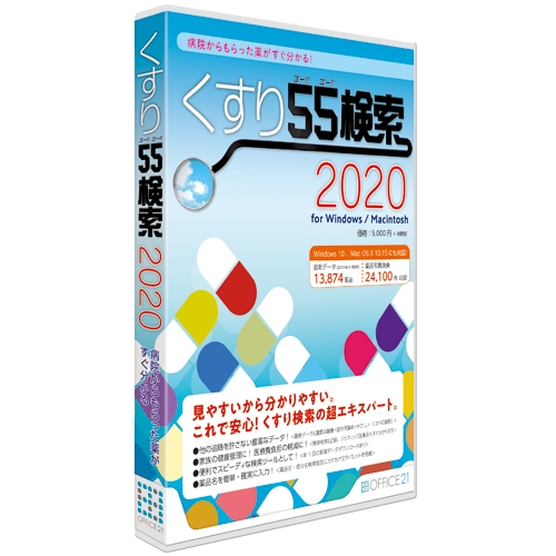 医薬品に関するデータベースの提供とPCソフトの開発・販売を行っている有限会社オフィス・トウェンティーワン(所在地:神奈川県横浜市)は、病院からもらった薬がすぐわかるソフト『くすり55検索2020 for Windows/Macintosh』を2019年11月29日(金)より販売を開始いたします。
