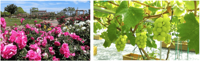 また、同園の中では、この季節、ぶどう、いちじく、梨狩りを楽しむことができます。旬の果物をもぎたてで食べる贅沢なひと時をお楽しみください。