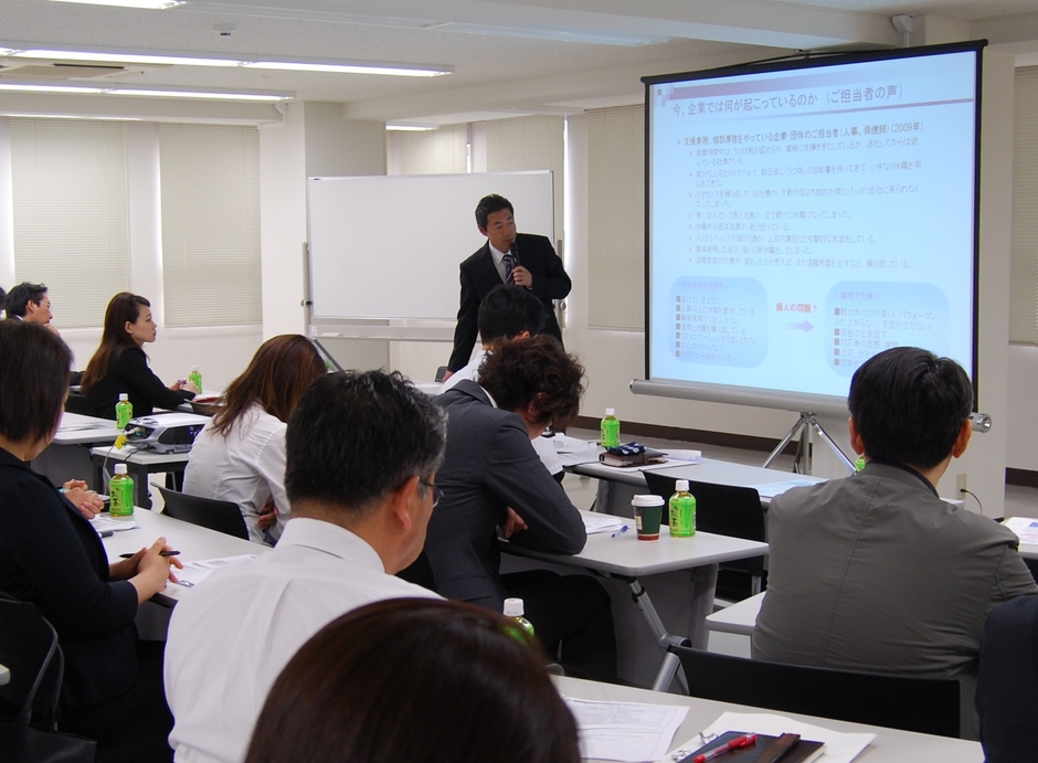 メンタルヘルス研修は、エディフィストラーニングが従業員支援プログラム研修として提供します。エディフィストラーニングは日本のメンタルヘルス研修の草分けで、「新型うつ」の対策研修や「シニア社員」向け研修に加え、アスリートも取り入れている「メンタルトレーニング研修」や「目標達成研修」などで高い評価を受けています。これらの研修では、具体的なケーススタディや参加者自身が抱えている課題を取り上げるライブセッションに力をいれており実践的な内容になっています。ストレスチェックサービスの結果により、必要な部門や職層ごとにこれらの研修を提供していきます。
