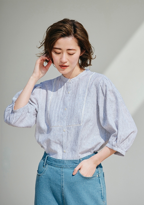 ◆ヨーロピアンリネン ピンタックブラウス