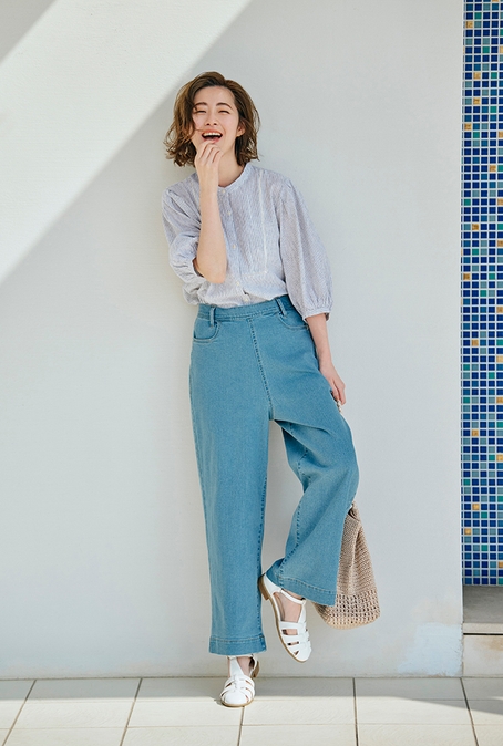 様々なボトムスにコーディネートしやすいブラウスやイージーに穿けてスカート見えするパンツ、程よい抜け感で顔周りの印象がスッキリ見えるワンピースなど、麻の特性である発色性の良さを活かしたカラー展開の商品をラインナップしております。