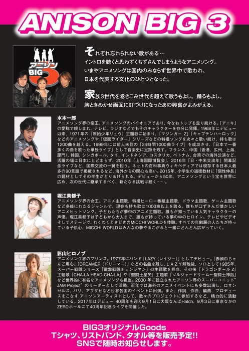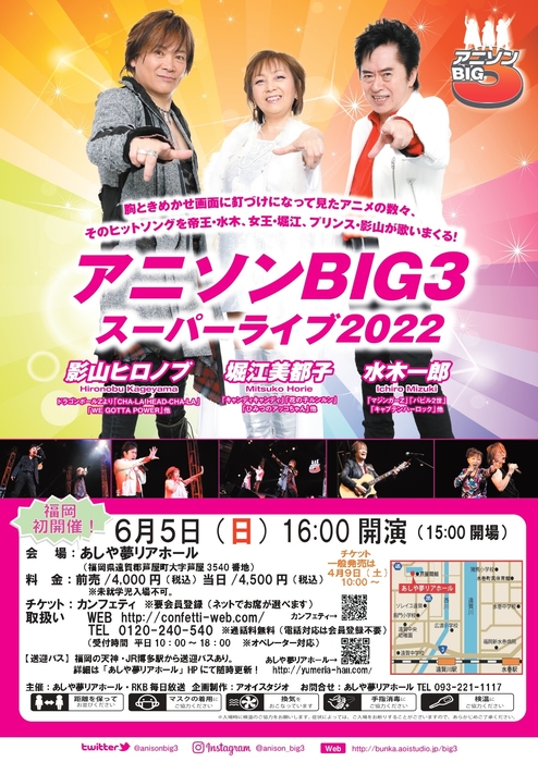 世代を超えて楽しめる アニメソングのレジェンド達が集結『アニソンBIG3 スーパーライブ2022』福岡あしや夢リアホールにて開催決定 カンフェティでチケット発売