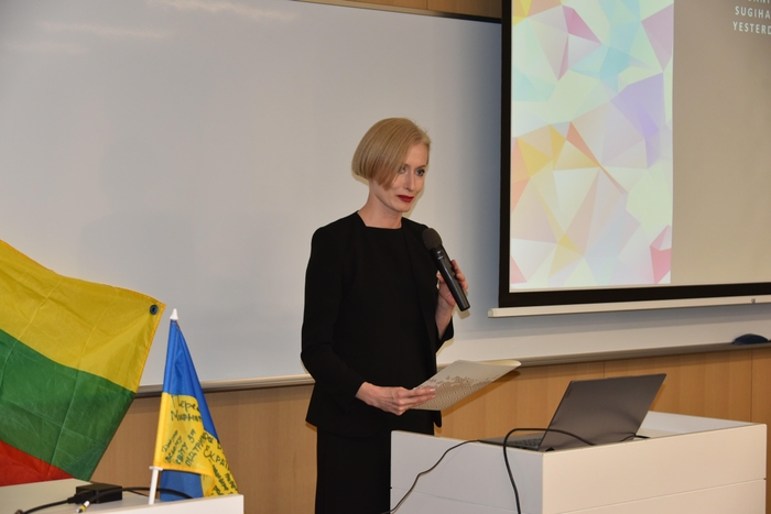 初めに、在日リトアニア大使館のユスティナ・クルトリテ参事官が「杉原の行動を理解し、記憶しておくことが将来につながります」とあいさつ。ボランティア・ガイド育成プログラムの受講者や学生ら約40人を前に、ヴィリニュス・ユダヤ史博物館のシナモス・ストレルツォーヴァス館長とヴィリニュス大学歴史学部のサルヴィユス・クレヴィチウス副学部長が登壇しました。