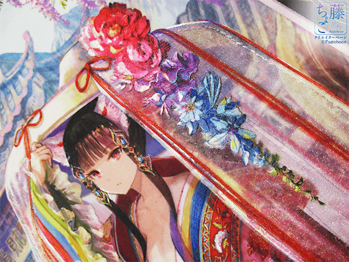 藤ちょこ先生が描いた美麗なイラスト「春色」に刺しゅうを施し、フレームに額装してお届けします。