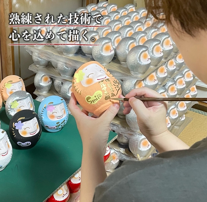 日本一のダルマ生産量を誇る群馬県高崎市。高崎ダルマの老舗工房で修行を積み、業界でも珍しい女性職人が1つ1つ手作業で描く笑顔が素敵な「ほほえみダルマ」が、2025年10月30日よりMakuakeでプロジェクトを開始しました。「特別割引」と「名入れサービス」で通常よりお得に世界で一つだけのダルマに。大切な方への記念品や贈答品として、「贈る人」「贈られる人」すべての心に温かさが届くように。 そんな人々の想いを紡いでいくダルマはどんなに時が経っても、受け取った人の記憶にやさしく寄り添い、ふとしたときに笑顔を思い出させてくれるのではないでしょうか。
