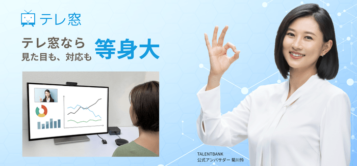 【見た目も対応も等身大!】オンライン接客・無人店舗・遠隔サポートシステム「テレ窓」は、株式会社Starbankが主催する「TALENT BANK」の公式アンバサダーを務める菊川怜さんの肖像を用いたプロモーション活動の開始をお知らせします。