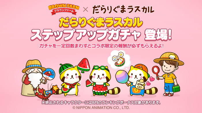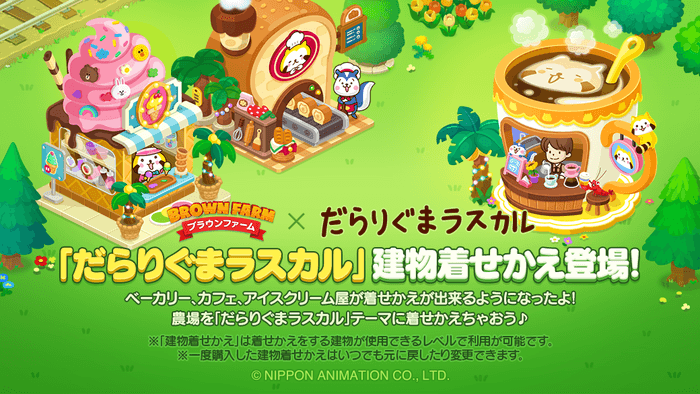 「だらりぐまラスカル」とブラウンだらけの農場ゲーム「LINE ブラウンファーム」のコラボレーションを本日より開始します。