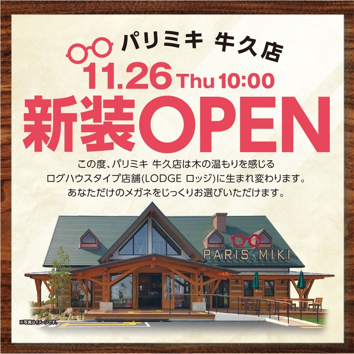 「パリミキ」「メガネの三城」を展開している株式会社 三城(本社:東京都港区、代表取締役社長:澤田将広 )は、2020年11月26日(木)茨城県牛久市に「パリミキ 牛久店」がログハウスタイプ店舗として、装い新たにリニューアルオープンいたします。