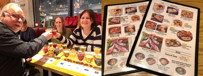 ▲「ビアバルNAGAOKAYA」では国内外のクラフトビール5種飲み比べが外国人客にも人気