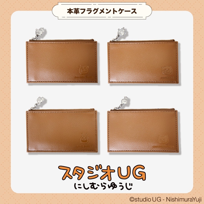 大人気クリエイター・にしむらゆうじが描くキャラクター(ごきげんぱんだ・こねずみ・ラブラビット・わるめのねこ)をモチーフにした本革フラグメントケース。