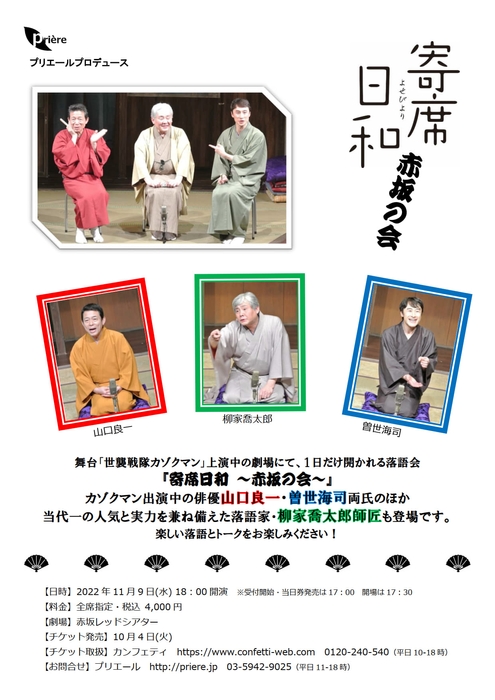 「カゾクマン」恒例特別企画 『寄席日和 ~赤坂の会~』開催概要