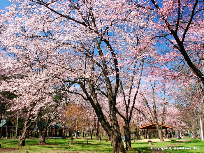 ジンギスカン奉行と共に買い出しを済ませた後は、地元民お勧めのお花見スポット「神楽岡公園」までサイクリング!北海道で桜といえば、「ソメイヨシノ」ではなく「エゾヤマザクラ」です。ソメイヨシノよりもピンク色が濃く、花と葉が一緒に咲くのが特徴で、旭川では5月初旬から中旬にかけて見頃を迎えます。神楽岡公園では、毎年約500本のエゾヤマザクラが咲き乱れるので、地元民も毎年首を長くして、春の訪れを楽しみにしています。自転車が苦手な方は、街なかの散歩を楽しみながら、歩いていくこともできますのでご安心を。