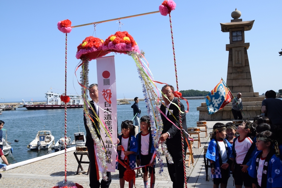認定された5月24日には、常夜燈の前で祝賀会を開き、くす玉割りや鞆こども園の園児らによる太鼓の演奏、地元漁師らによる餅投げを行い、地域全体で喜びを分かち合いました。