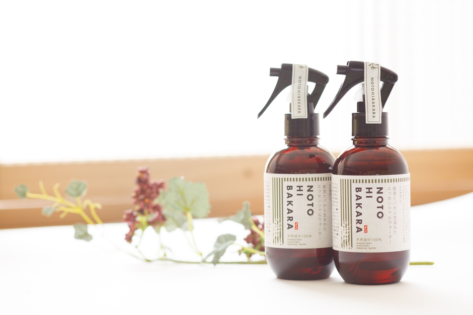 「NOTOHIBAKARA(ノトヒバカラ)楽天市場店」では、これらの“能登ヒバ”の良さを活かした商品を取り扱っております。“能登ヒバ”から抽出された蒸留水でつくられた、天然成分100%のエッセンシャルウォーターは、小さいお子さまやペットのいるご家庭でも安心して手軽に除菌・消臭が出来るとネット上でも話題を呼んでおり、メディアとのタイアップ記事や、ブロガーの間でも多く取り上げられております。