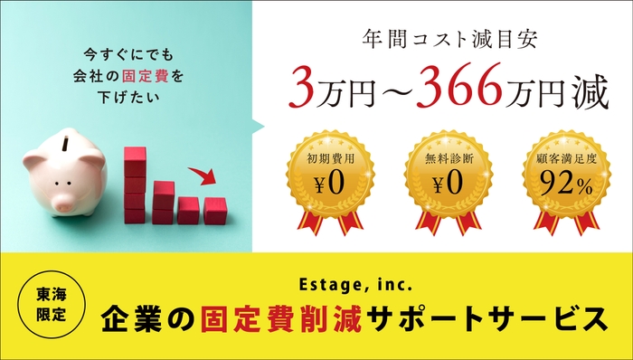 企業の経費削減コンサルタント事業を展開する株式会社エステージ(本社:愛知県名古屋市、代表取締役:坪井 優、以下 エステージ)は、東海3県(愛知県・岐阜県・三重県)に本社がある中小企業を対象とした、企業の固定費・出費を削減するためのサポートサービスを4月21日から提供開始いたします。